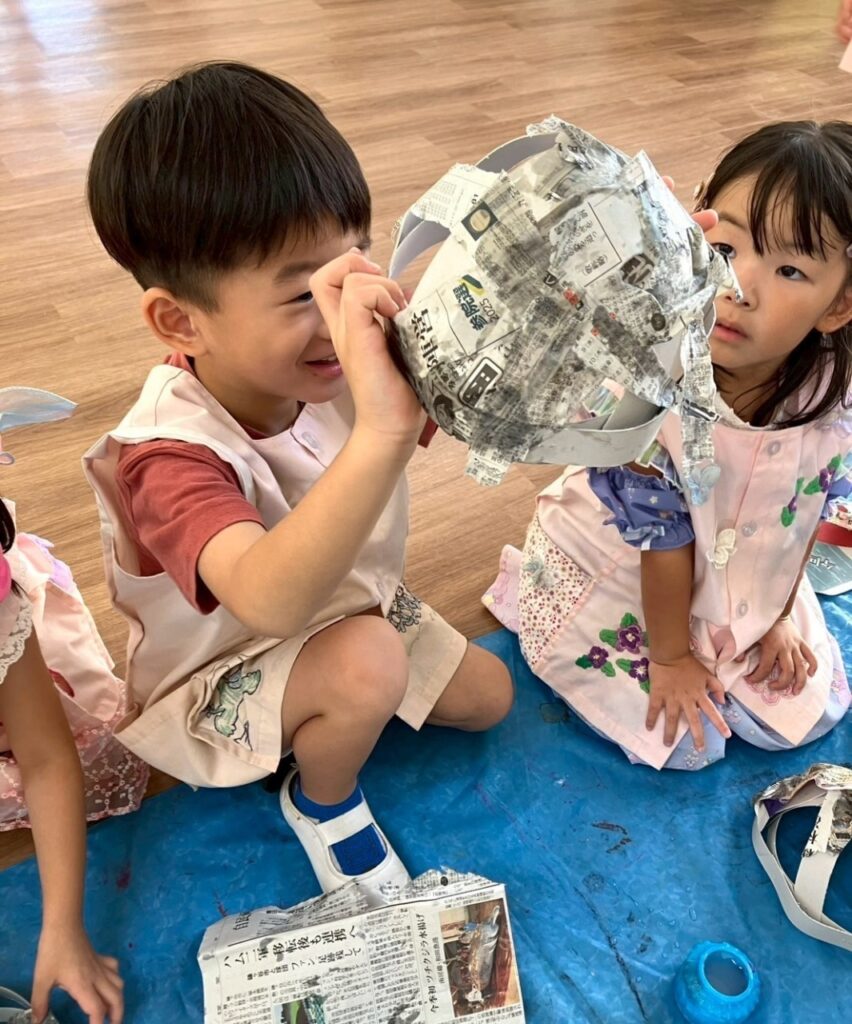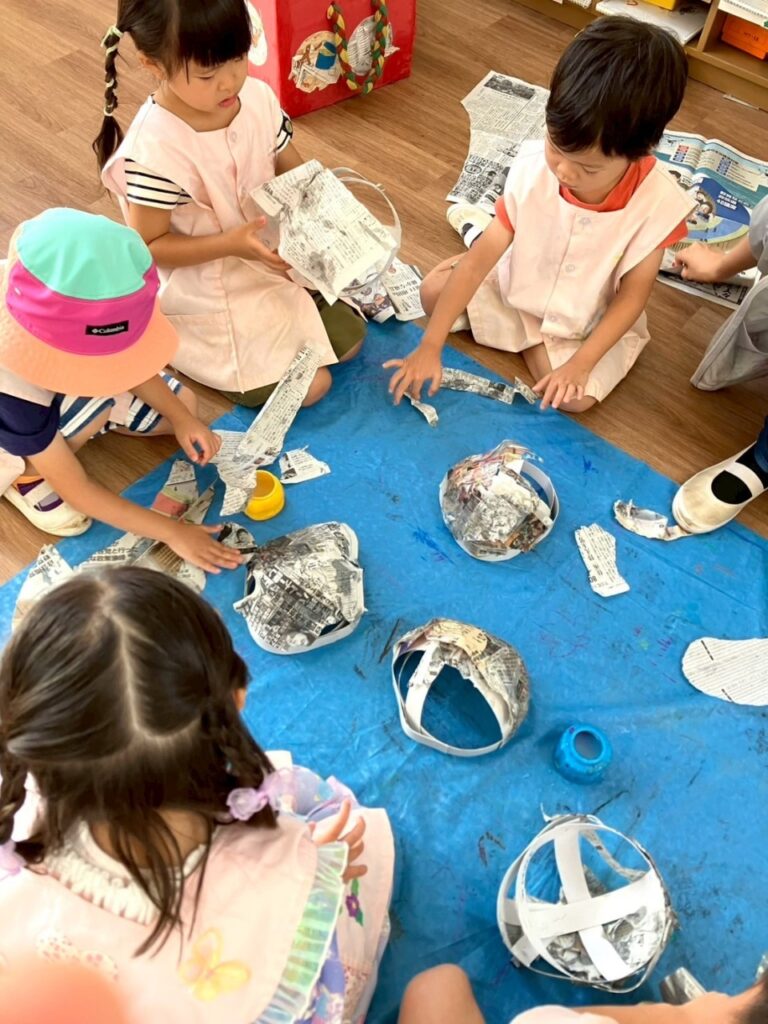 そこで、今回は、かえるのお面づくりの様子をお届け致します!