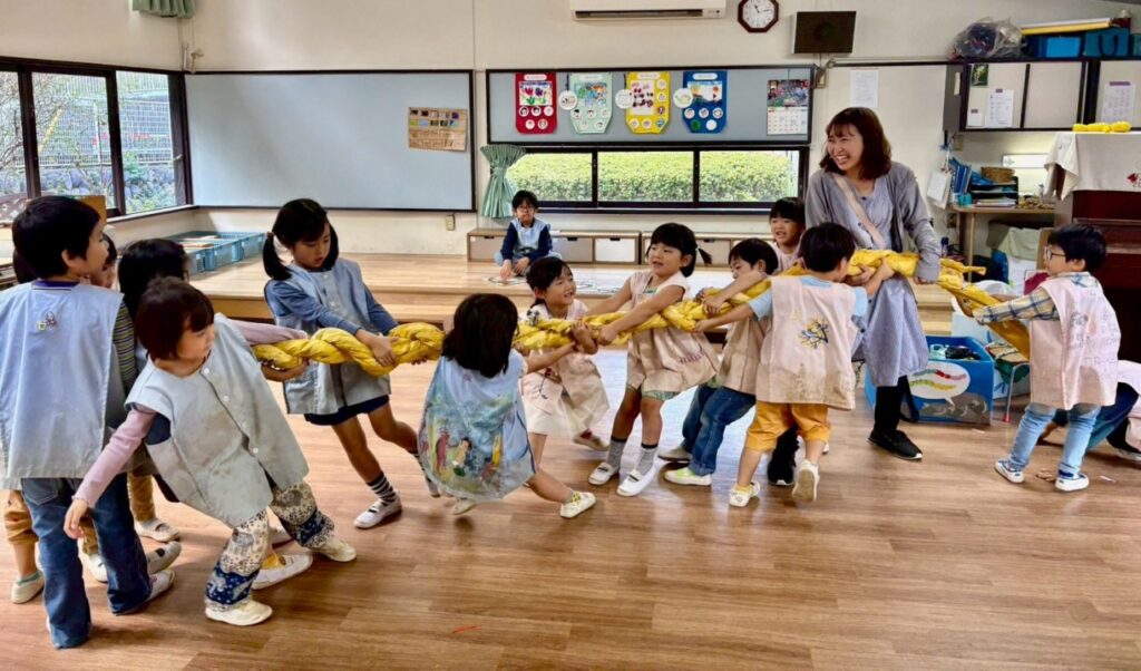 けれど、なえるようになった喜びは とても大きかったようで、「きょうも、なわを ないに きたよ~!」と集う姿がありました。
