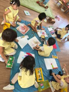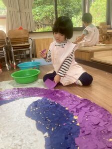 ある日、ふたばぐみ(2歳児・満3歳児クラス)のお部屋に おじゃましてみると・・・。 みんなで、とっても楽しそうなことをしていました! 「いろんないろ、まぜてみよう!」 「わたしは、ぴんくが ほしいな!」 「おいしい ぜり […]