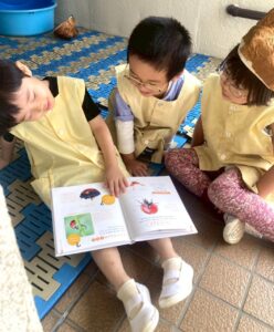 今年の運動会のページェントは、『かえるのつなひき』(儀間 比呂志さく/え 福音館書店)です。 「もう、なりたいもの、きまっているよ!たいこをつくるかえる~!」 「わたしは、なわを つくりたいから、このかえるが いいな~! […]